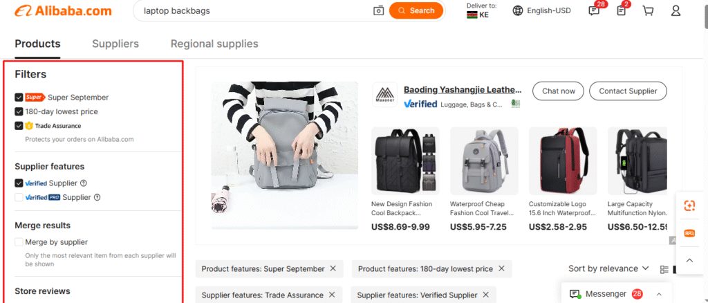 - Price Range and MOQ: Set a realistic price range and filter by the Minimum Order Quantity (MOQ) that aligns with your business’s needs.